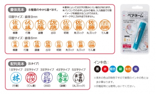 9mmと6mmの印面が一本で使えるツインタイプのネーム印。