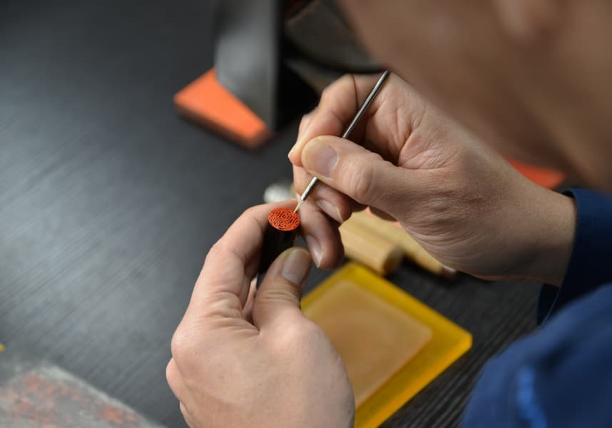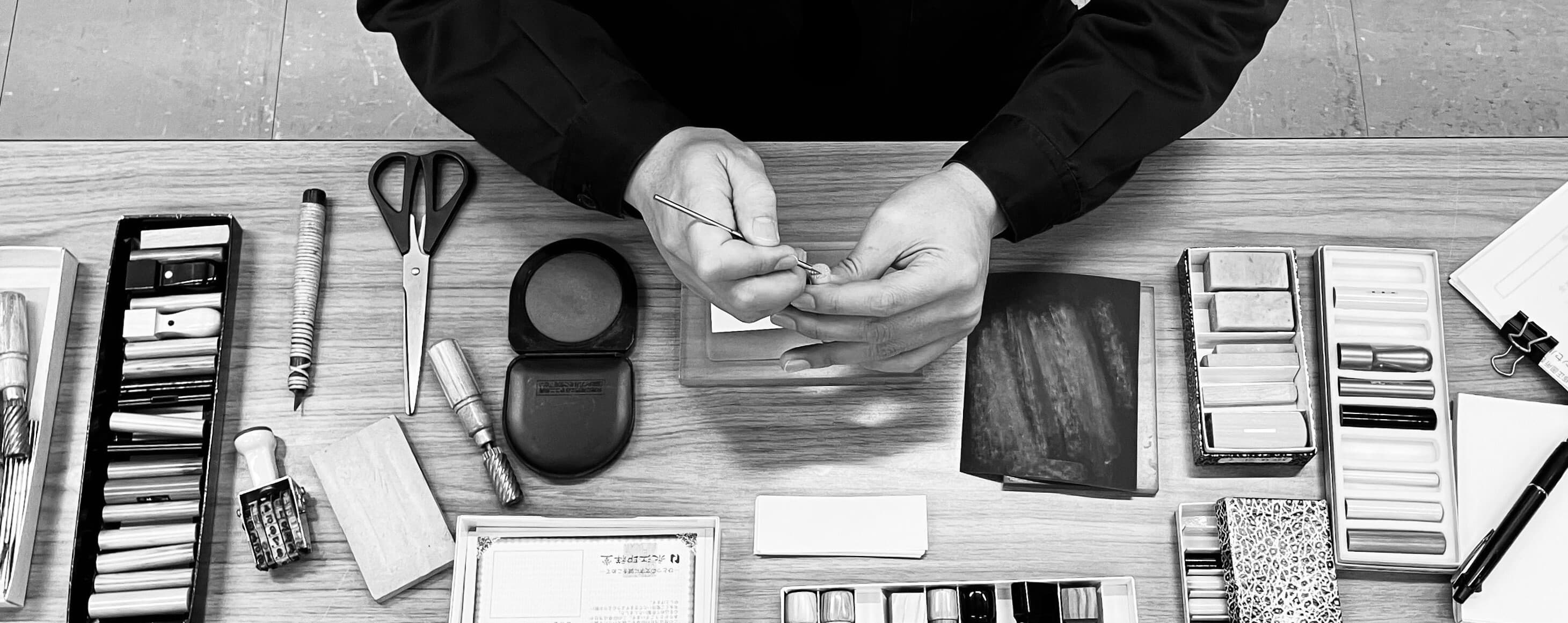 永江印祥堂では、一本の印鑑を製作するために工程に応じて3名以上の職人の手を掛けています。