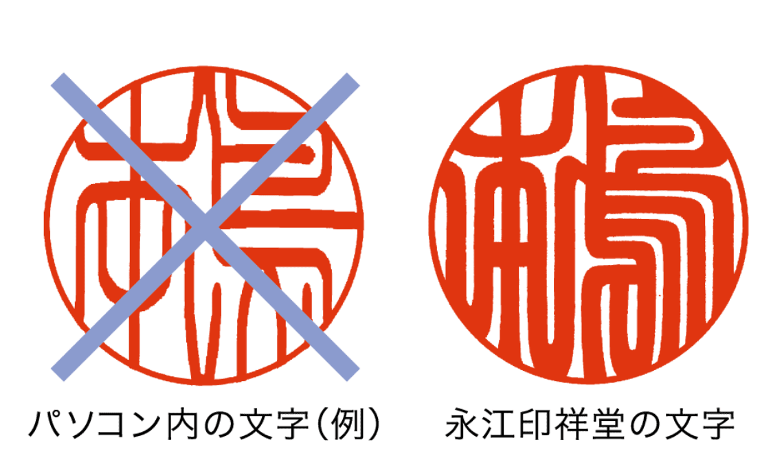 弊社では「永江文字」というオリジナルの印章専用文字を使用しております。